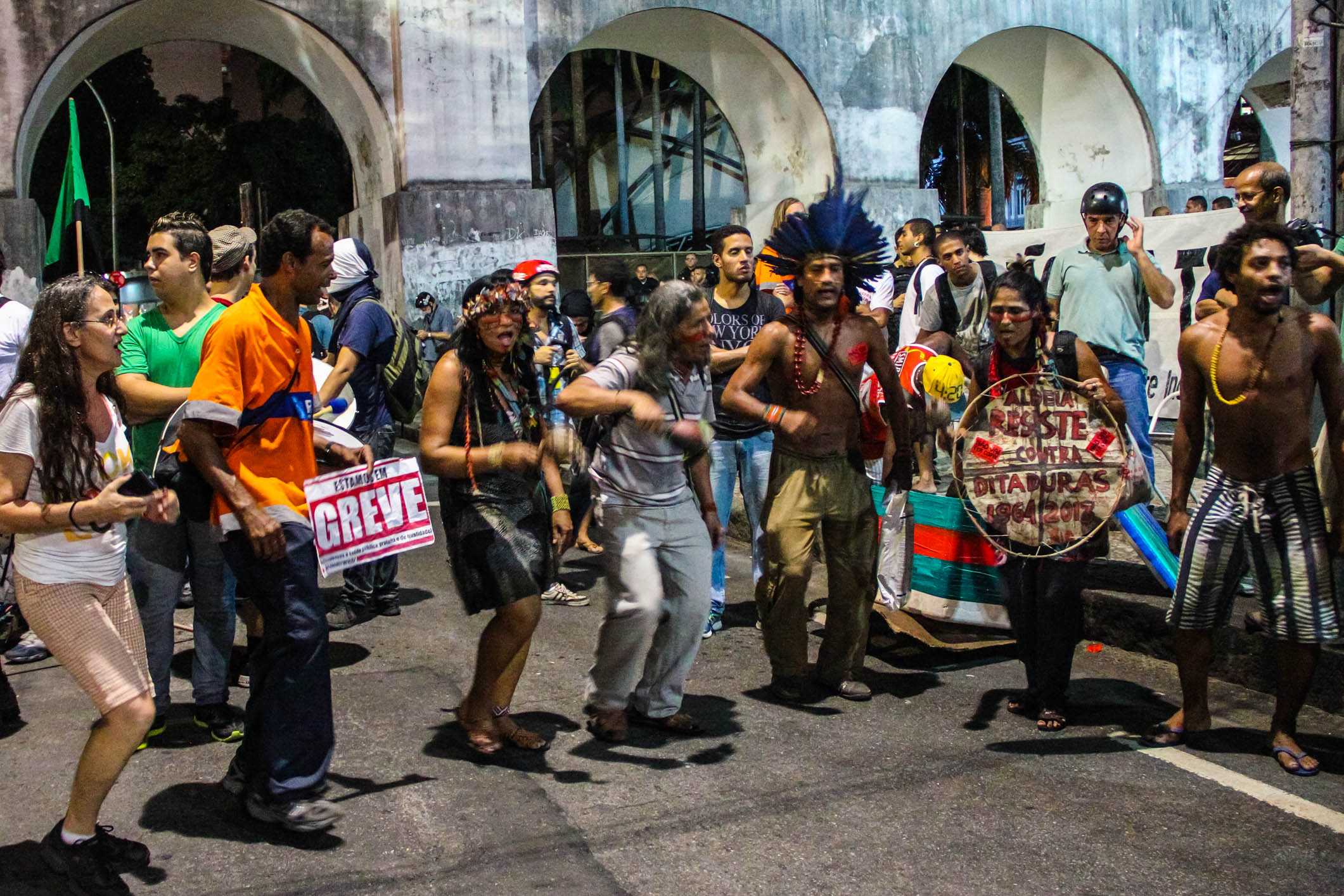 Neste dia 12 de março, o ato #NãoVaiTerCOPA, #ForaFIFA, organizado pela Frente Independente Popular - FIP, teve sua concentração na Candelária com destino à Lapa.
